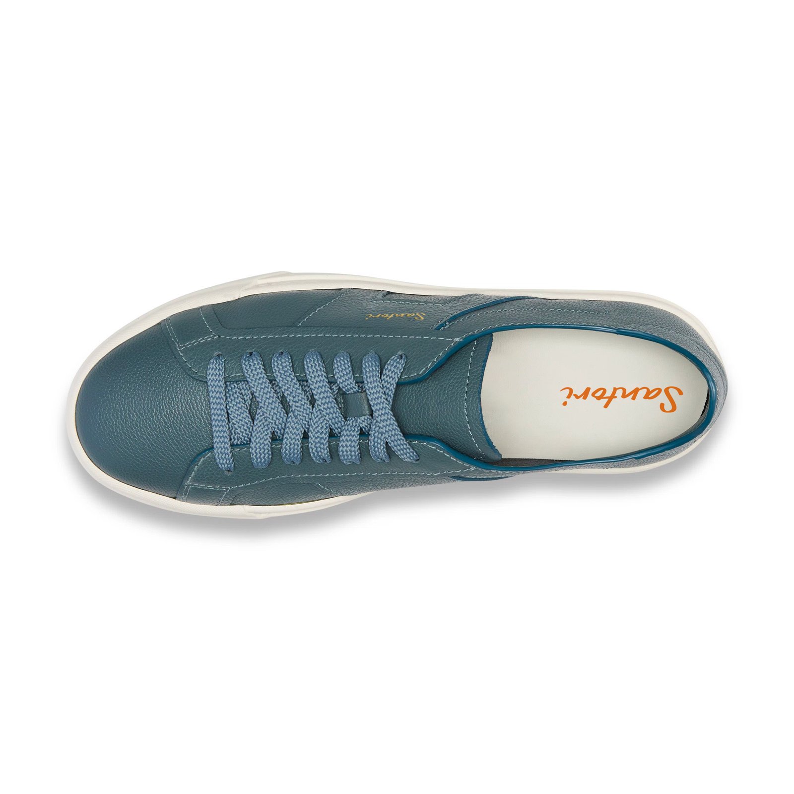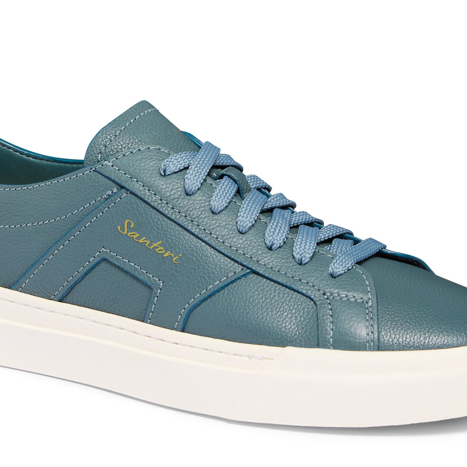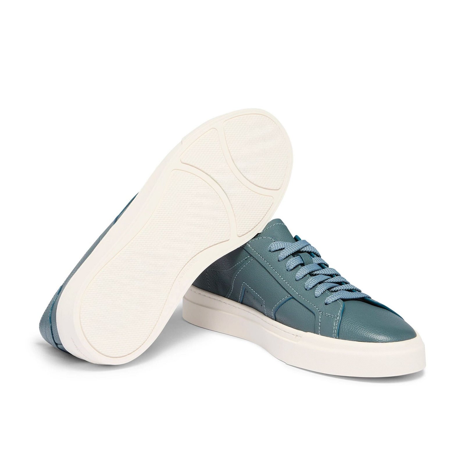 Sneaker da uomo in pelle martellata blu cielo con doppia fibbia