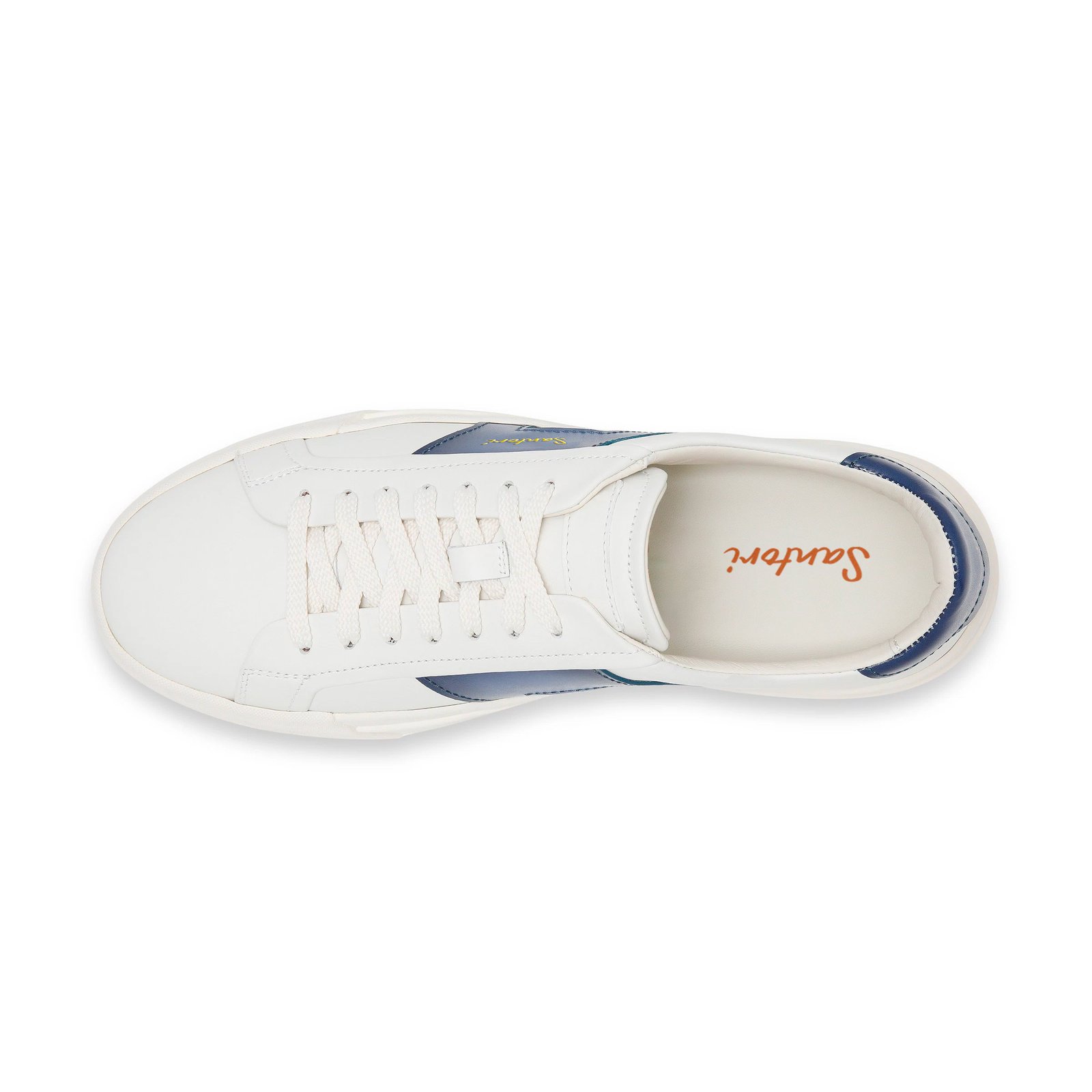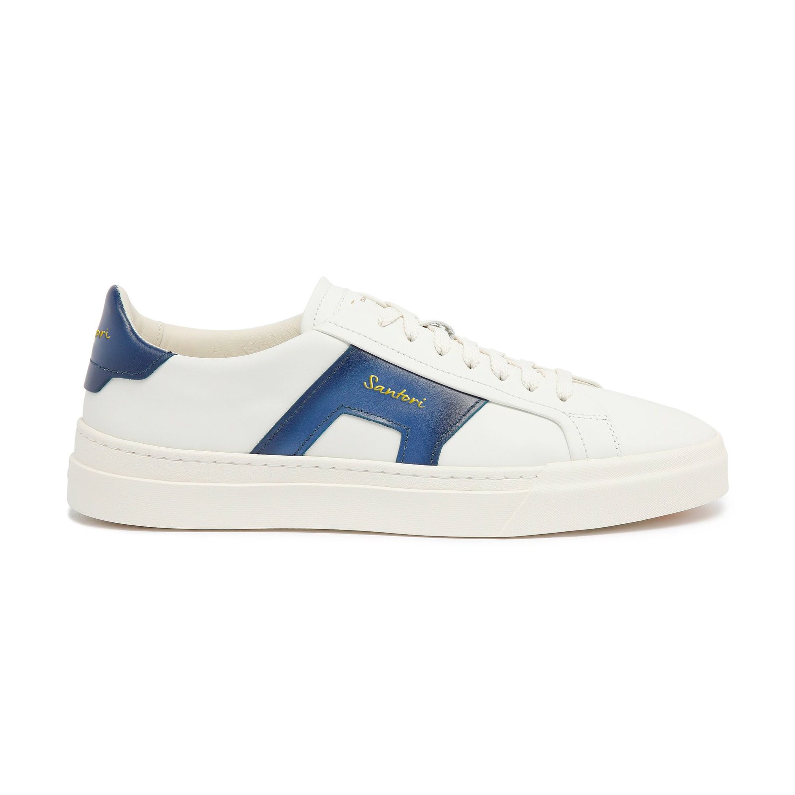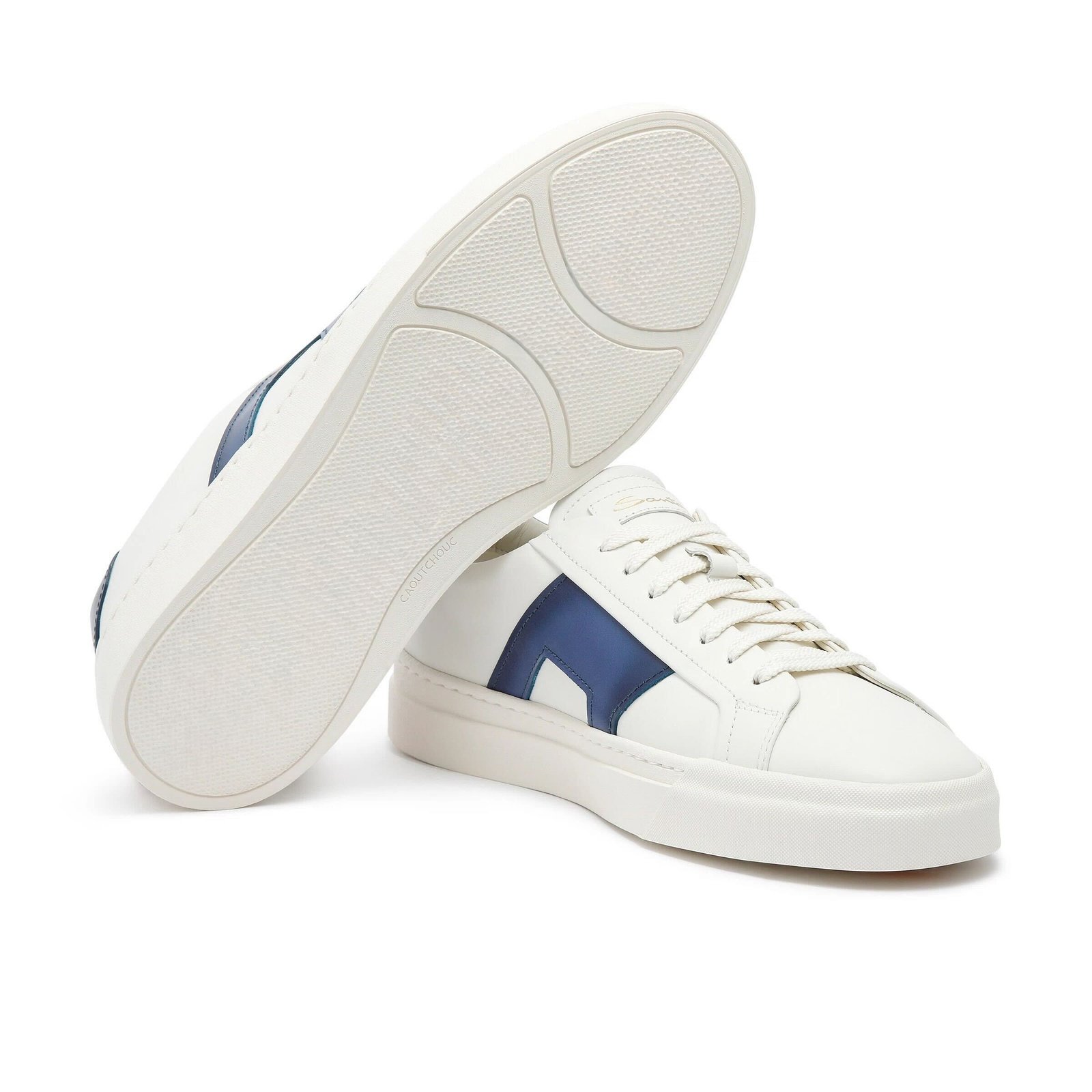 Sneakers da uomo in pelle bianca e blu con doppia fibbia