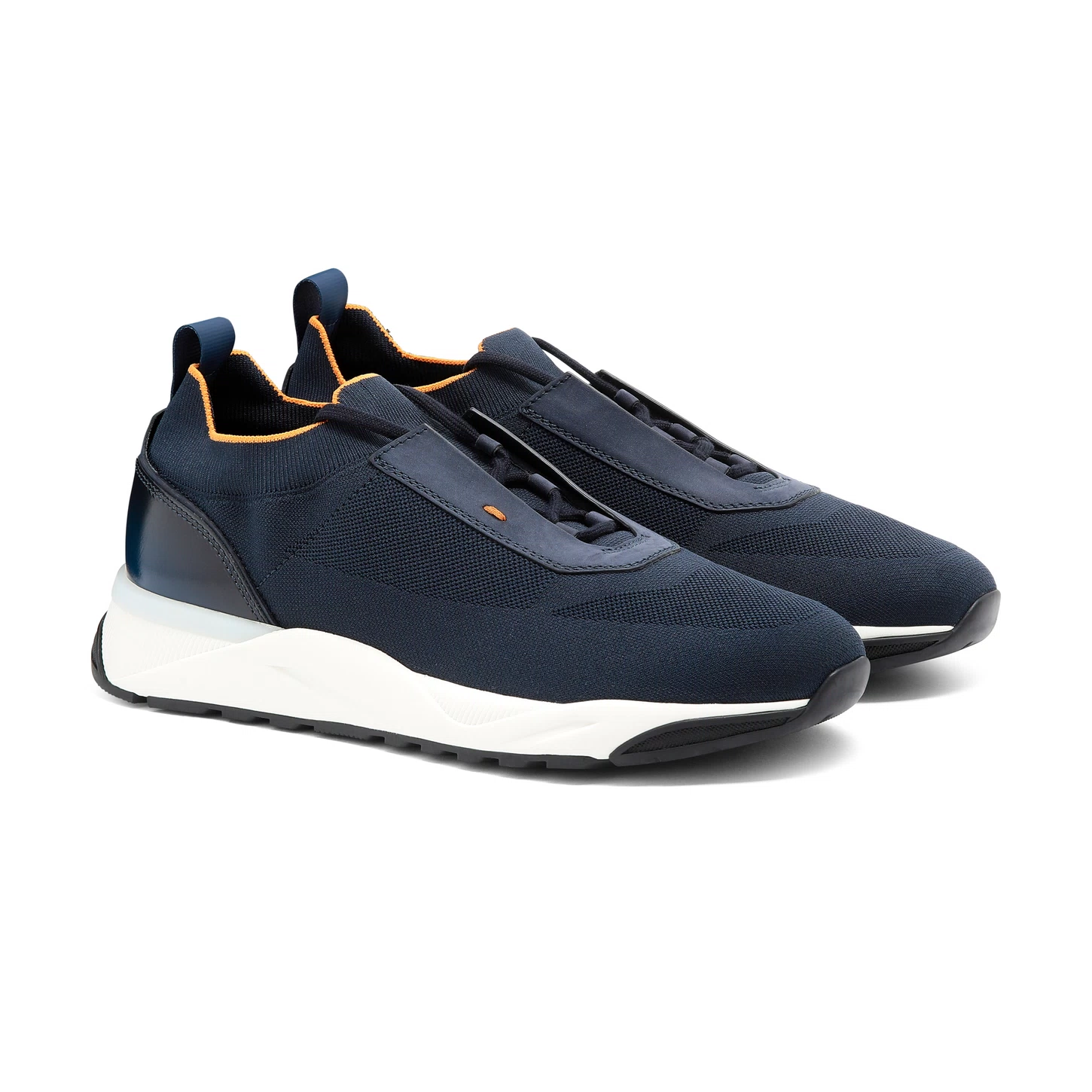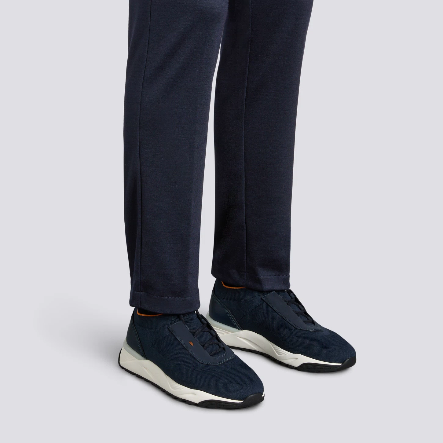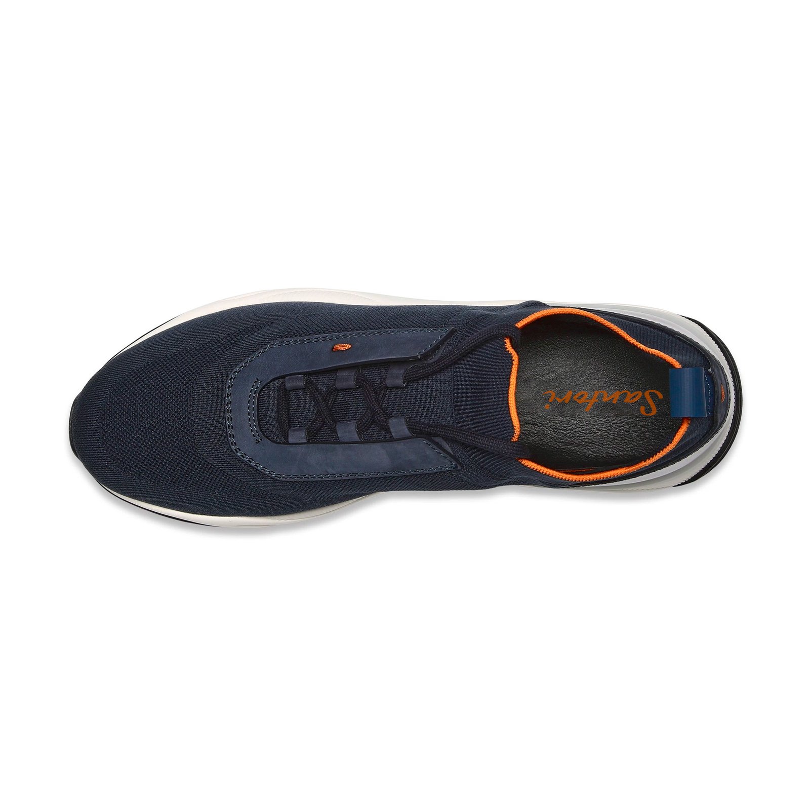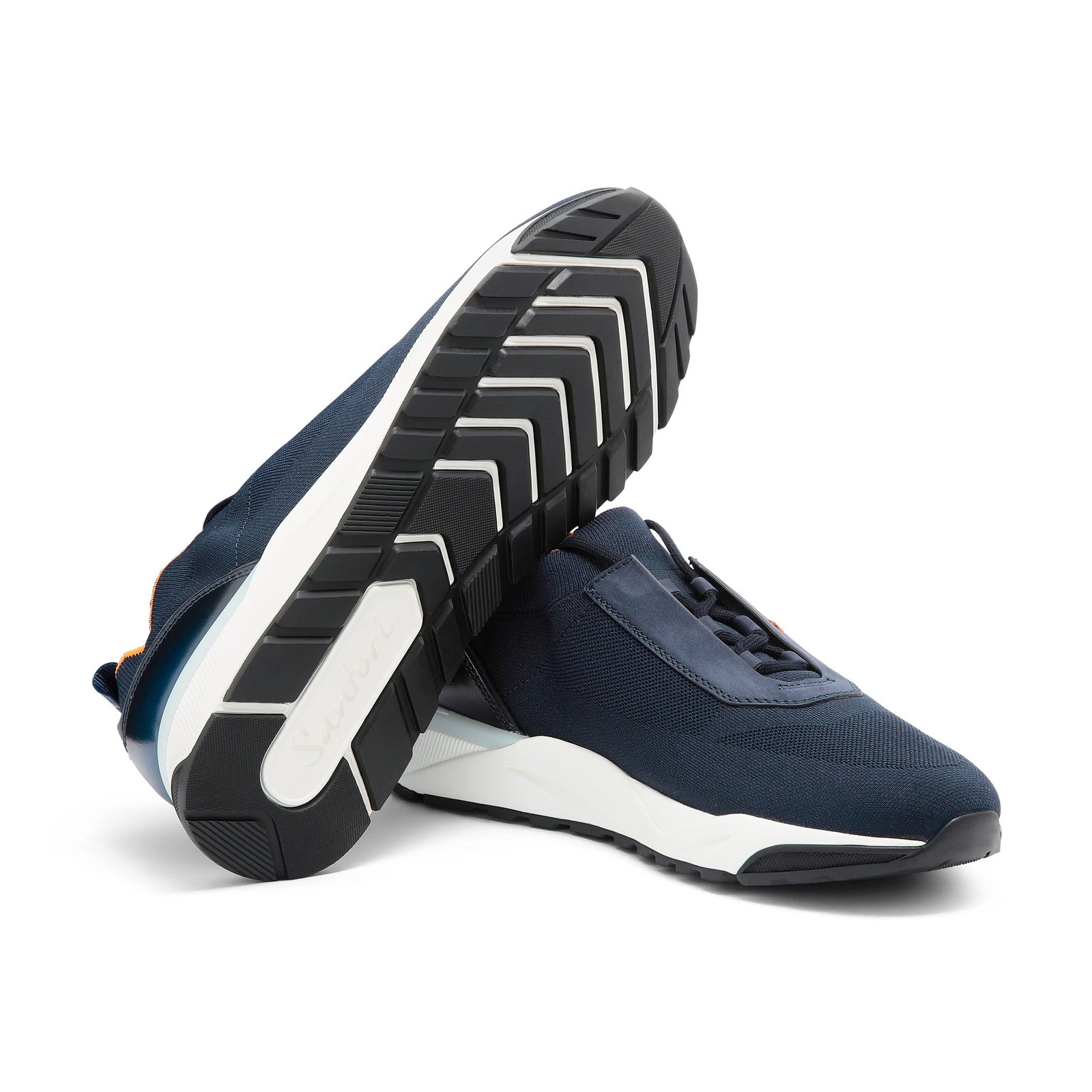 Spirito dinamico, atteggiamento contemporaneo ed elementi tradizionali incarnano perfettamente il DNA Santoni. Questa sneaker bassa a calzino è realizzata in tessuto elasticizzato impreziosito da elementi in nabuk resistente e decorazioni arancioni, il colore iconico della Maison. La suola spessa in gomma, che favorisce il movimento naturale del piede, e la linguetta sul tallone per una calzata facile, accentuano la silhouette comoda e ispirata al running.